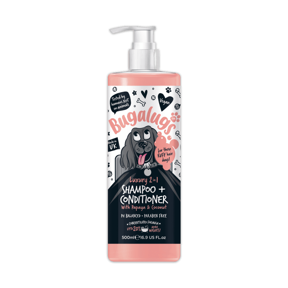 Denne 2-i-1 shampoo og balsam fra Bugalugs renser og plejer din hunds pels i ét trin. Den er beriget med papayaekstrakt, kokosolie og kolloid havregryn, der efterlader pelsen ren, blød og skinnende.