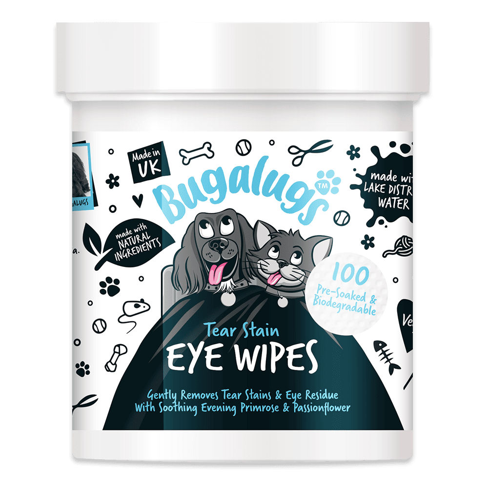Bugalugs Tear Stain Eye Wipes er skånsomme, biologisk nedbrydelige servietter, der er designet til at holde din hunds eller kats øjne rene. De fjerner effektivt tårestriber og andet udflåd.